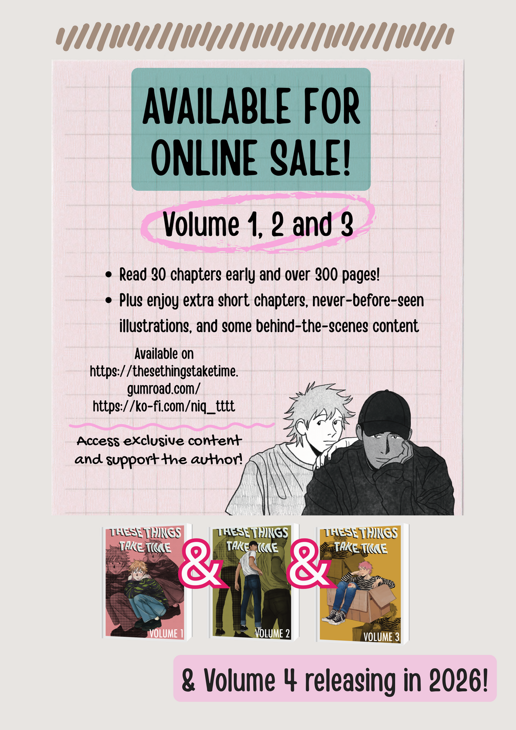- Your purchase of the digital copy of THESE THINGS TAKE TIME VOLUME 1 comes with two extra chapters, providing additional insights into the lives of your beloved characters.